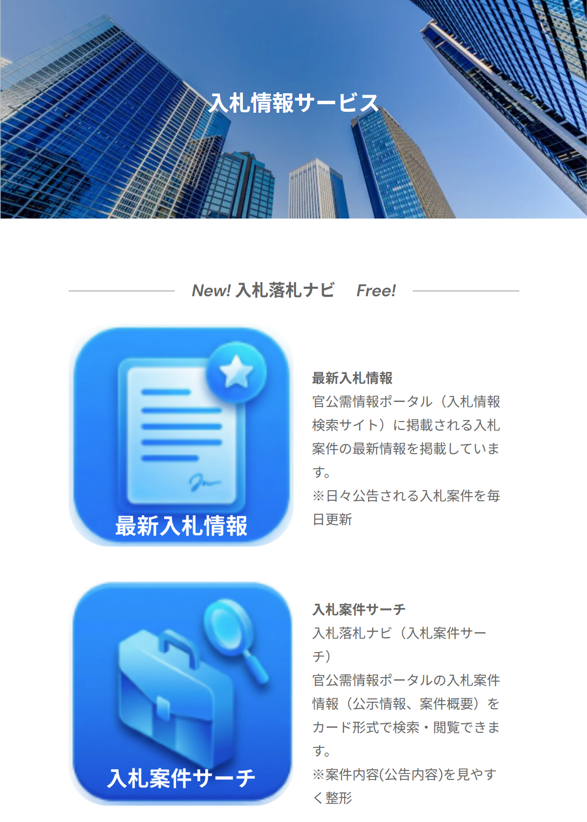 入札情報と落札情報を掲載